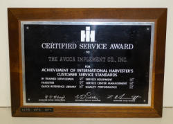 about 22"x22", presented from Citizens Savings Bank to Avoca Implement