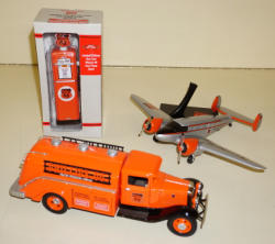 toy is really heavy sun stained, turned the paint an un-even dark green, box has some wear