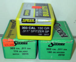 Sierra 174gr HPBT -73 total; Sierra 180gr Spitzer -12 total; Speer 150gr Spitzer SP -37 total; sell for one money
