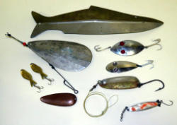 includes wooden bobbers; knife; string; hooks & more; sell for one money