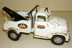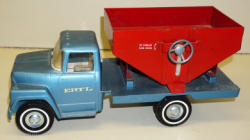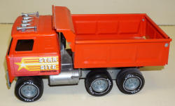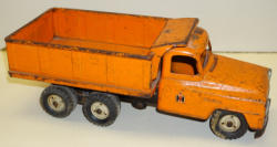 very heavy play wear, has an unusually placed IH Decal on the top of the dump bed, heavy play wear