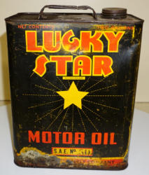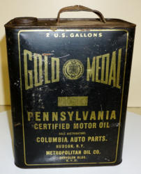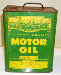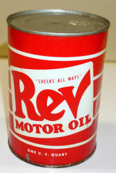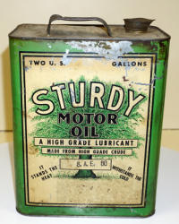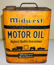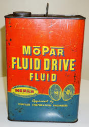 heavy wear, advertises Plymouth, Desoto, Fargo Truck, Chrysler, Dodge & Dodge Trucks; about the same size as a 5-quart can, unique