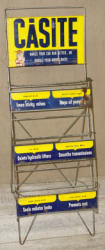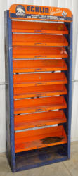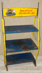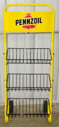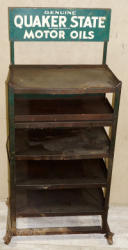 heavy wear, sign is very rust and has a hole through it, still a nice display rack for cans, 33"x16"x16"
