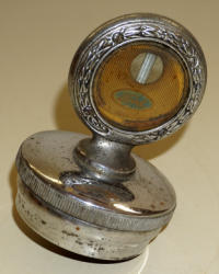 plastic body has a large hole in the top; plastic lens, one side is really faded, reverse side does have a crack in it, good patina globe