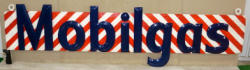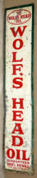 15"x60", heavy painted metal by the American Art Works Co, has some white paint drips on the sign and some heavy scratches, still a pretty good looking sign, rates 7.5 condition