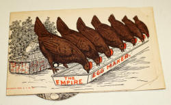 has a mechanical wheel that legs being laid when spins, about post card size, unique