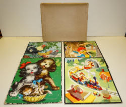4 original puzzles, believe original plain brown box, has some wear, all tog o