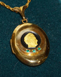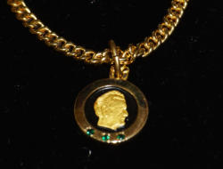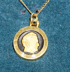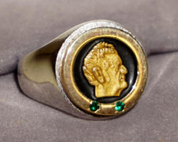 looks like a 10k gold medal mounted on a sterling silver ring, very nice, NIB