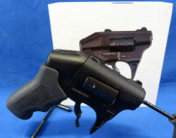 1.25" stainless barrels; hammerless; mint & unfired; 8-shot swing out cylinder; very unique look to it; red dot night sights; made in USA; SN#SVF005293