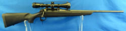 like new condition; smooth action; 22" BBL; Weaver scope; removable magazine; black synthetic stock; nice gun; made in USA; SN#H804175