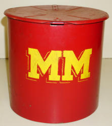 3' tall, 5" wide, nice original stenciling on the side, metal is rusty and worn, but a 100+ year old piece of Moline advertising