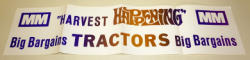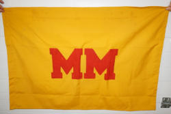 "MM" is 14" tall, black letters are 9" tall, all cut from plywood, old original pieces, might have been repainted at one time, includes 2 sets of "MM" letters, all to go