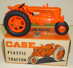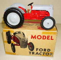 Toys are both nice, tractor is about 90% paint, scraper is closer to 85% paint; both have plastic rims; great graphic boxes, both are complete and square, marked, ESKA, but has some age spots and general wear, both boxes rate 7.5 condition, sells as a set