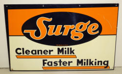 37"x14", 2 plastic faces w/ aluminum can, clean and nice with some light wear, unique farm sign
