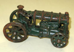 5.5" long, original paint, it is cracked at the handle bars and does not have the Popeye figurine; has "Spinach" Cast into the sides