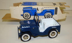 Toy is about t90% condition, no spare tire; has some light play wear; Box was found separate from the toy and was a NOS, never assembled box, flaps have never been folded! Some light discoloration from age, but overall box is 8.75 condition