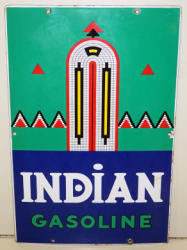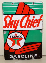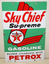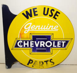 rated 8.5, 18"x15", porcelain flange sign has good color and gloss, has chips on flange and around the perimeter