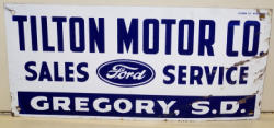 rated 8. ,18"x21", DST sign has good color, wear and fine scratches; this company was based out of Sioux City, IA; neat graphics