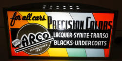 rated 7, 15"x36"x7", the molded plastic insert is slightly yellowed, mounted in it's original metal light box, very small crack on the bottom left corner of the red logo