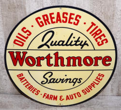 rated 8, 29"x26.5", DST tombstone shaped sign has good color and shine, has wear/scuffs