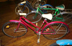 heavy wear, has an old Hobo Days bumper sticker on the stand