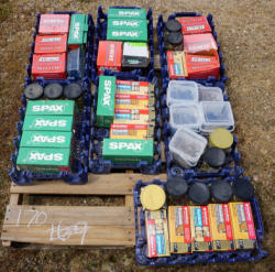 rollers, clips, taping knives, lite-forms, framing nails; all to go