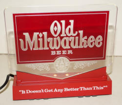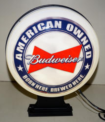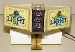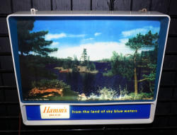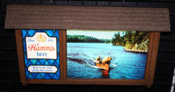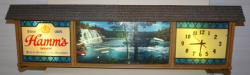 works good, this sign has been recently restored by "Dr. Hamm's"; new replacment glass, motor and scroll inside; original case has some general wear, but overall very nice and ready to display