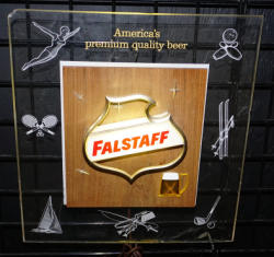 10"x12"x19", used original, some wear, has the original Falstaff Label under the lid with the ice pick too