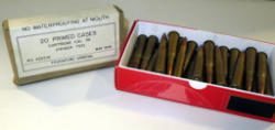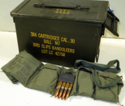 believe the yellow case are reloads; old military box; 100 rounds total; sell for one money