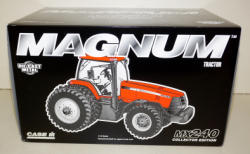 Toy is 97% paint with some chips around the hitch and grain tank; plastic rim variation; box is good with normal wear, has some old cloth packing tape on the back side, not sure if it came that way or not