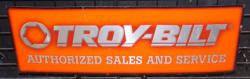 24"x18.5", dated 1986, has some discoloration and wear, shows the 110 L&G Tractor; I was told most dealers did not display this sign since it showed what was wrong with a bunch of different pieces