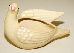 Ashtray is 7" wide, Duck is loose from the base, but not broken