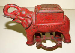 9" long, 6" high; red -orange appears to be original paint, has attached ashtray frame, works