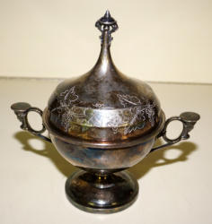 Silver plate with decorative handles includes provenance; about 9" tall, 10" wide at the handles, great original patina, comes with a letter inside explaining how she won it, a real piece of Deadwood & South Dakota history!