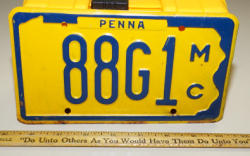 creased down the center and has some paint loss, but a neat embossed brass plate
