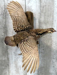 older mount but looks very nice; could use a detailed cleaning; wing tips are 23.5" long; mounted to drift wood