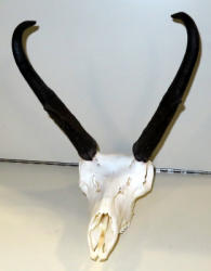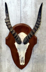 very nice look; mounted to wood board; horns are 12" long and 9.5" wide tip to tip;