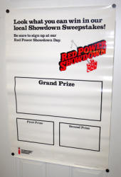 about 5' long and 24" tall, great graphics, but has heavy damage on the top edge and some on the bottom too, I think most could be salvaged if framed, but as-is condition