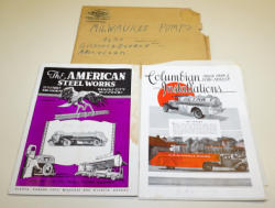 some great brochures showing early gas pumps and globes, most pieces have some creasing or normal wear, nice lot, all to go
