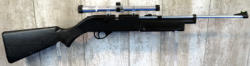 used but nice shape; could use a bit of a cleaning has scope and removable quiver; sling; overall 38" long; no transfer needed