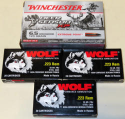 .223 boxes are all full, 60 rounds total; 6.5CM is partial w/8-rounds and 12-brass; sell for one money