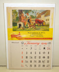 17"x11", really unusual double calendar pad at the bottom, some damage to the top of the calendar and general wear, wrapped in plastic to protect