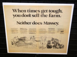 23"x28", great ad from the early 1980's when farming was tough, nicely shrink wrapped to a board to display