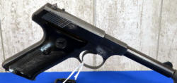 6.75" BBL; believe to be Tenite checkered grips w/left side thumb rest; has some finish loss to the barrel; one magazine; USA; SN#443480; A-166