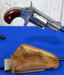 1-1/8" Stainless barrel; spur trigger; wood grips; leather holster; 5-shot fixed cylinder; USA; SN#C64610; A-158