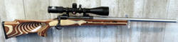 24" Stainless Threaded Barrel; smooth action; Boyds custom laminate stock w/thumb hole pistol grip; Nikon Prostaff 7 4-16x50; caliber is not marked on gun, going by what owner stated; USA; SN#F20487D; A-141
