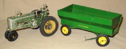 both original, paint poor on tractor, Wagon is 80% paint, but missing end gate, 2x the money