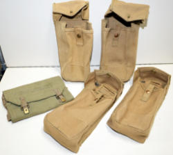 M1912 Tan Cotton Web belt; holster is M1909; holster is Left Hand model; stamped 1917 A.G.; includes M1917 ammo pouch w/12 rounds of 45ACP on half moon clips; great original set;