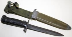 Longbranch made bayonet for No. 4 Mk 1 rifle. With metal sheath and canvass frog. C with broad arrow acceptance marked; 7.5" spike