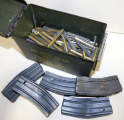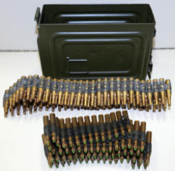 believe they're 7.62 (100 rounds) & .30-06 (65 rounds); sell for one money